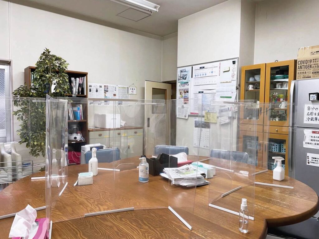 改修前の事務所では、休憩時間はスタッフが事務所や更衣室で空いている場所を見つけ食事をとり、